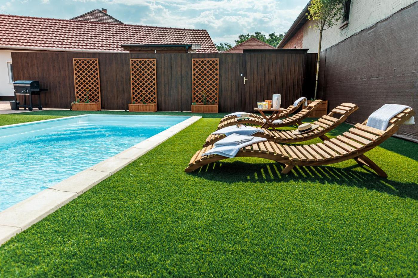 Situated in Mórahalom, Zöld Gerle ház Mórahalom features accommodation with private pool, free WiFi and free private parking for guests who drive. This villa offers air-conditioned accommodation with a patio. Guests have access to a sauna, hot tub and spa facilities.